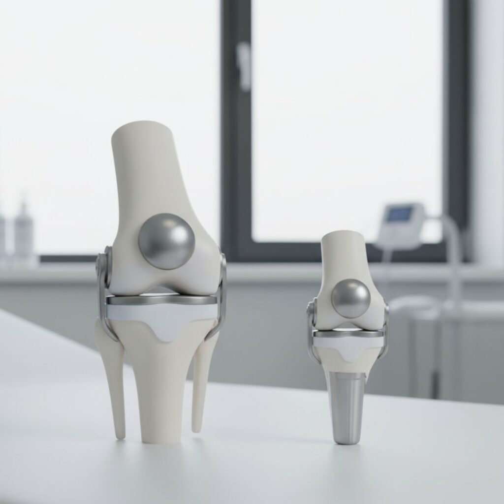 While both procedures aim to relieve pain and restore mobility, TKR replaces the entire knee and is more suitable for patients with advanced arthritis in all compartments, whereas PKR replaces only the affected area, preserving healthy tissue and allowing faster recovery. Post-operative pain and recovery time are generally higher for TKR, while PKR offers a less invasive option with a quicker return to activity. Longevity of implants differs slightly, with TKR lasting 15–20 years and PKR around 10–15 years, depending on individual lifestyle and joint condition.